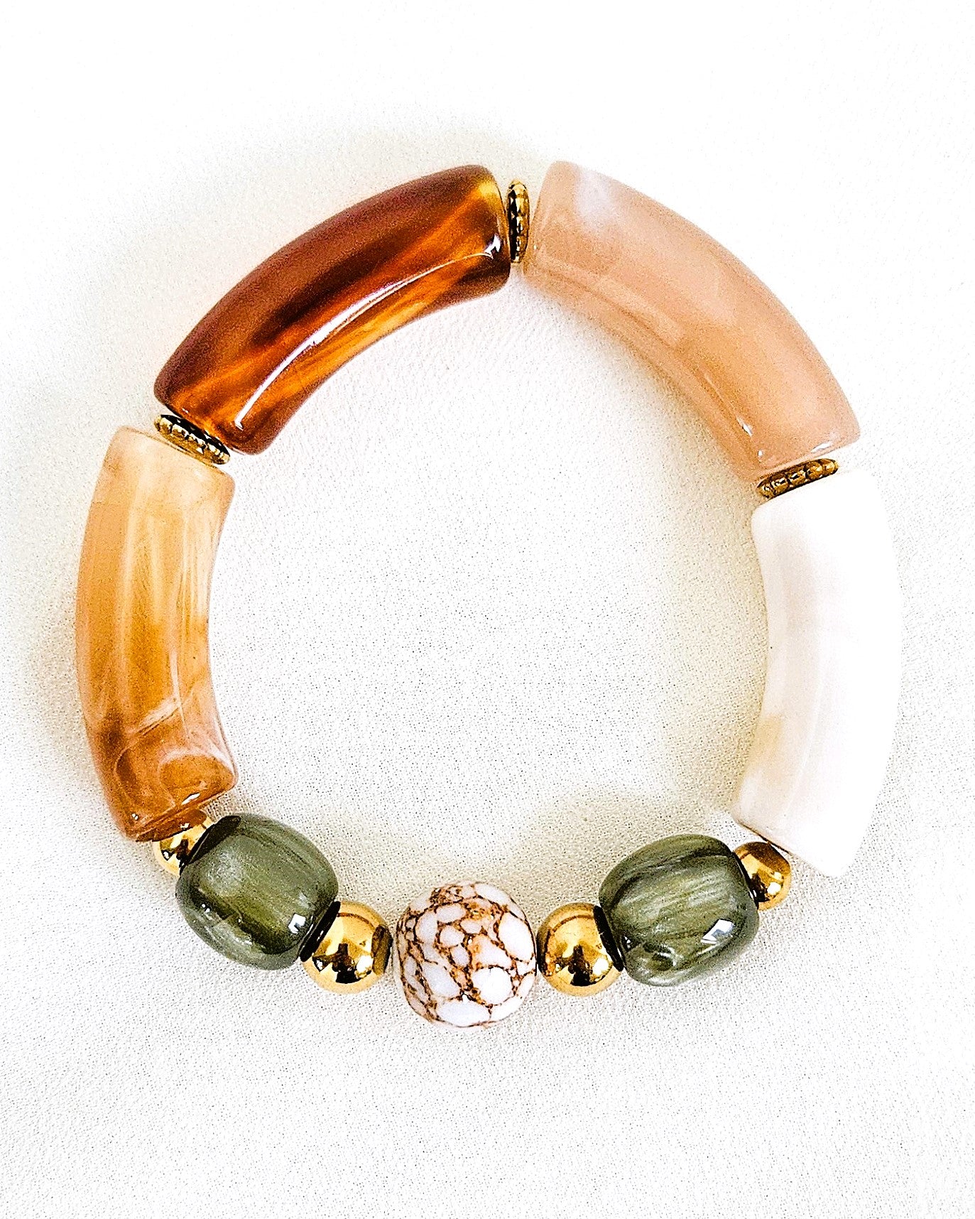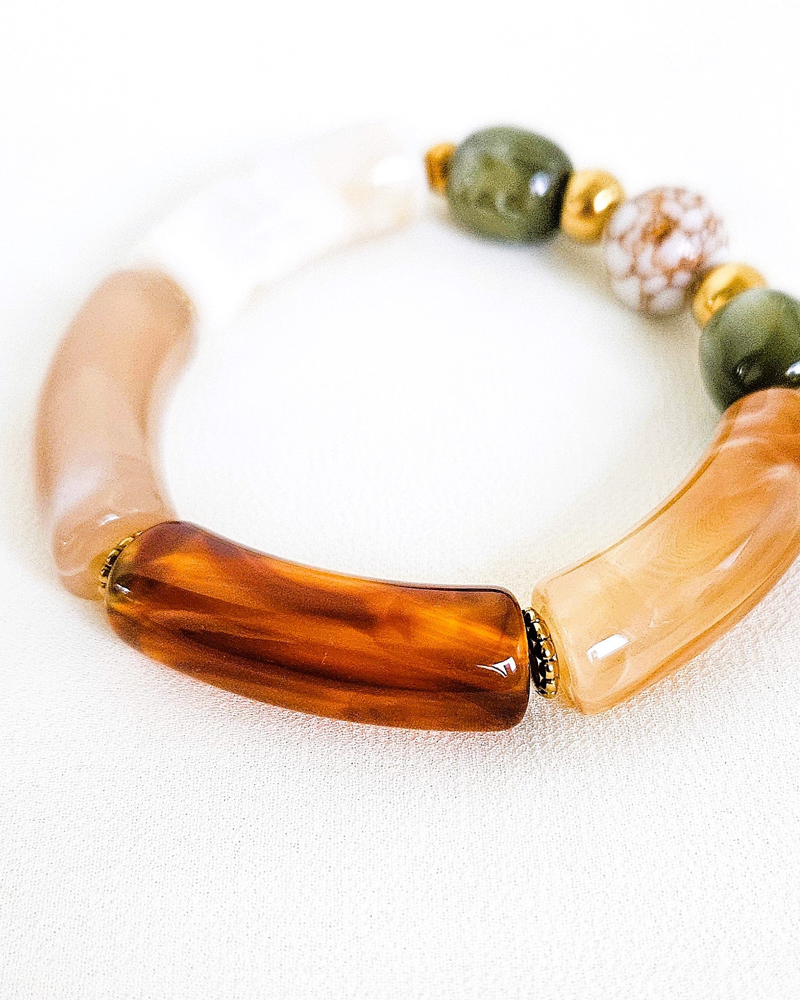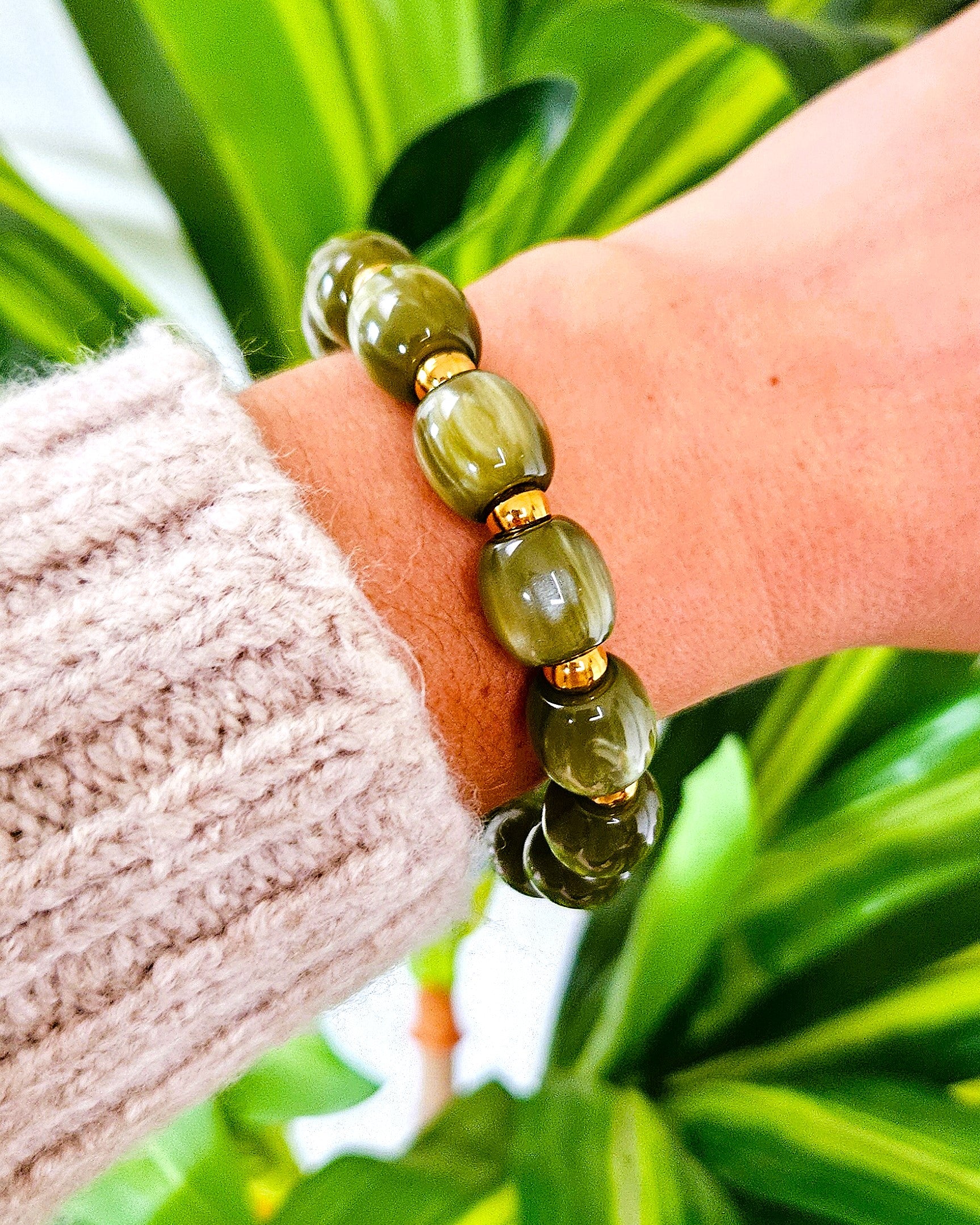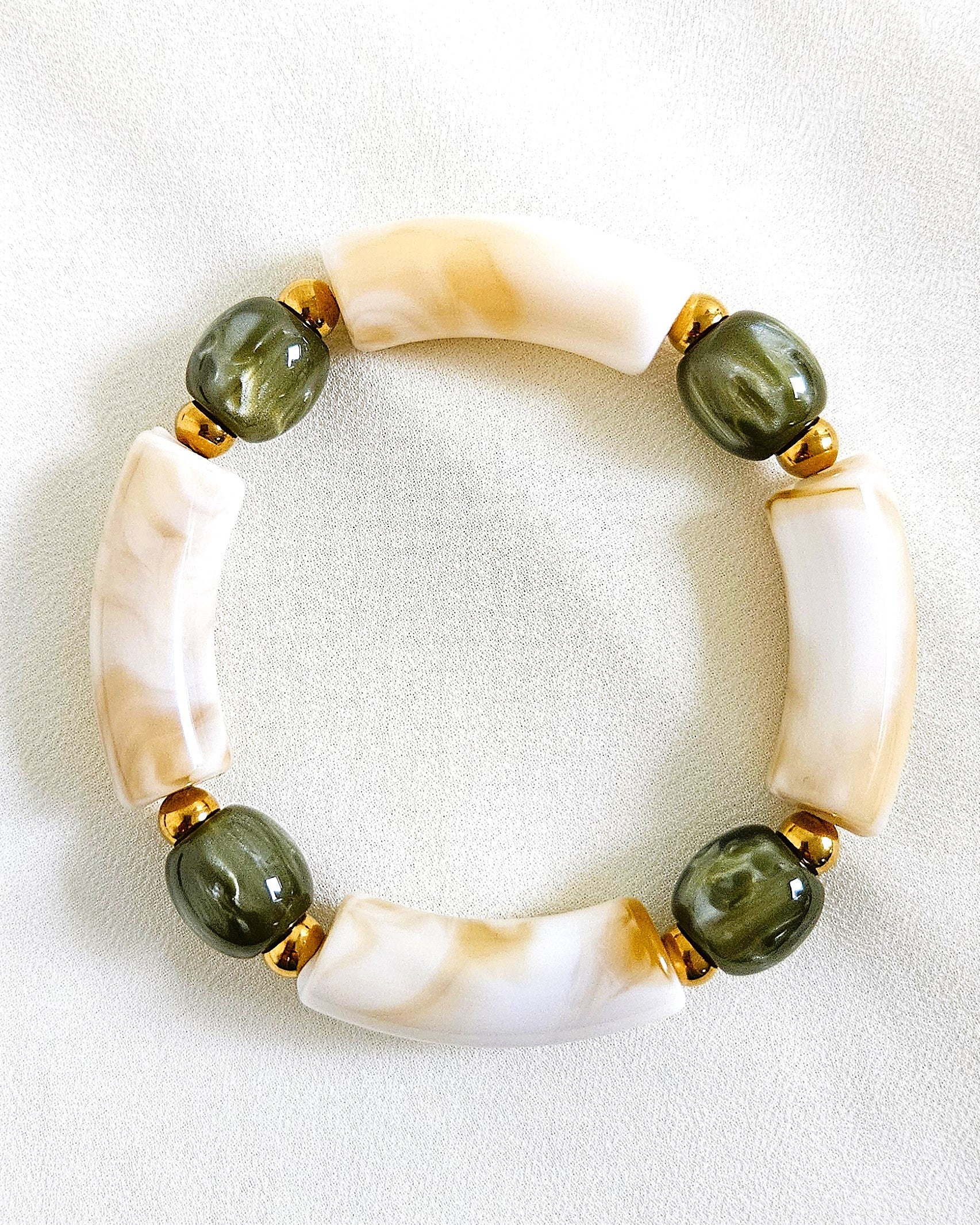 Imaginés et conçus à la main, le trio de bracelets Olive et ses couleurs en plein dans la tendance de la saison illumineront vos tenues avec élégance