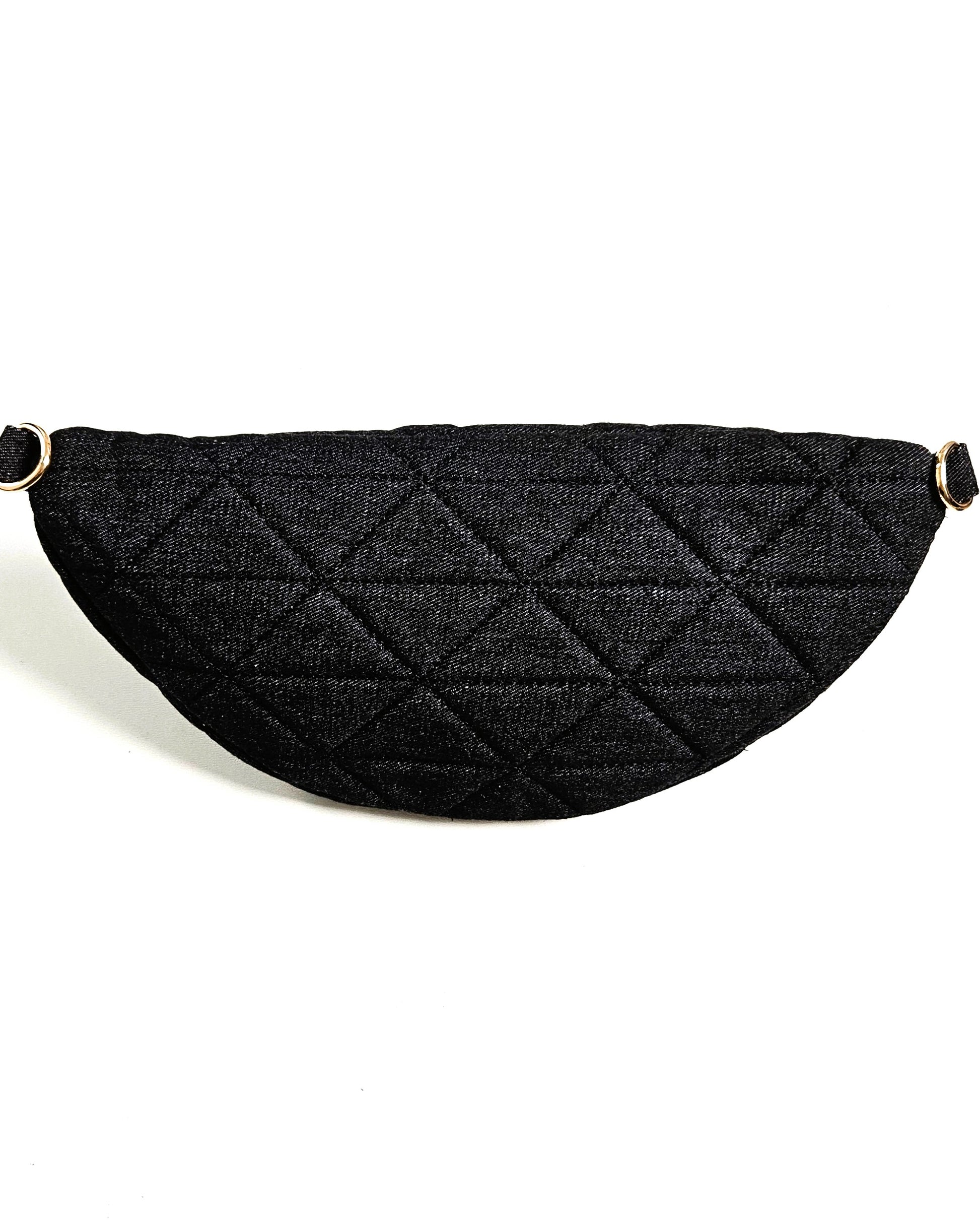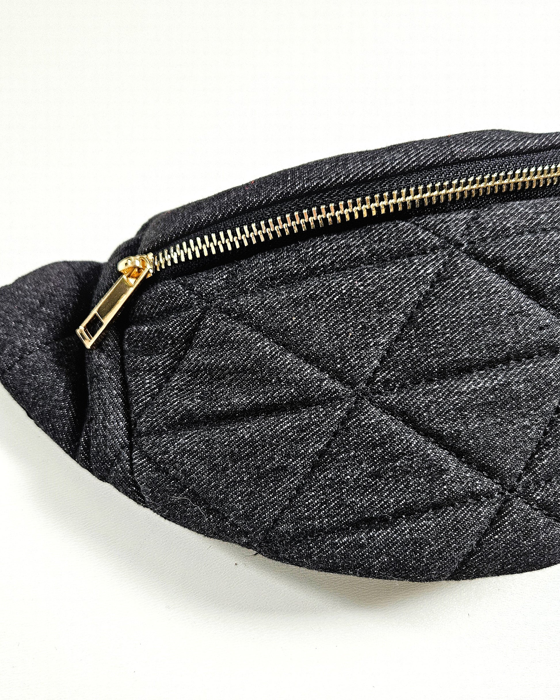 En plein dans la tendance du matelassé, la banane Denim effet jean est le compagnon idéal pour garder ses indispensables sous la main et s'accorder avec toutes vos tenues