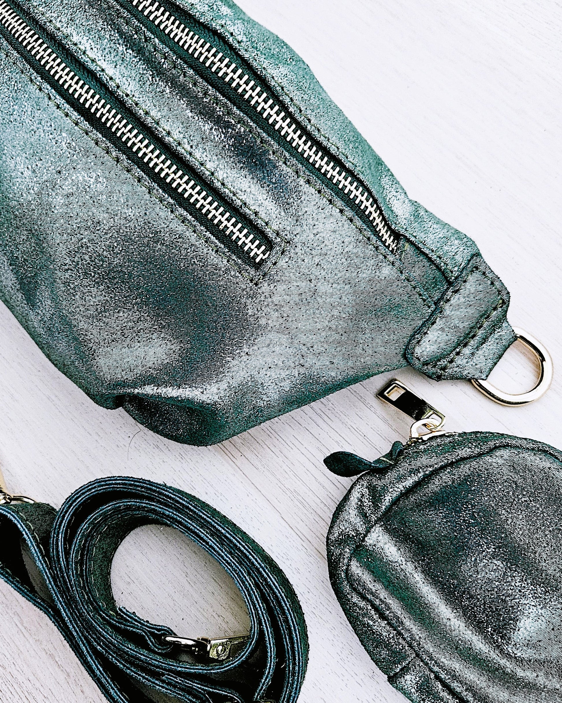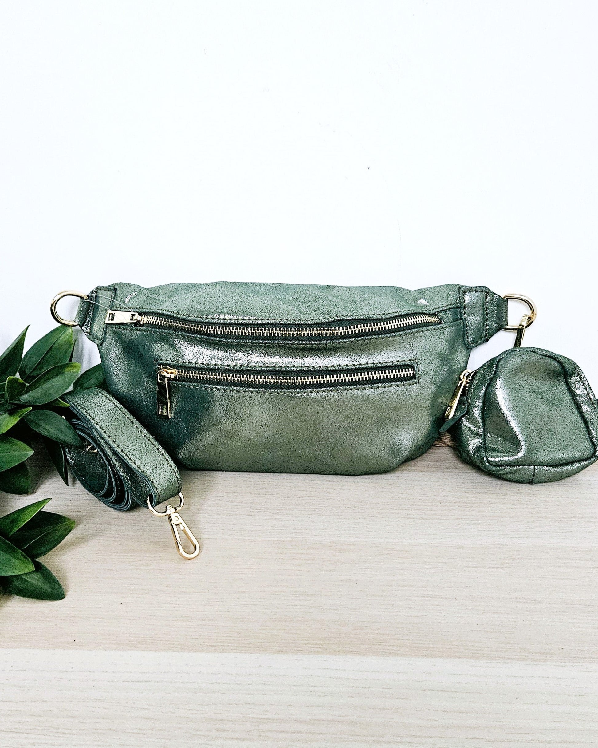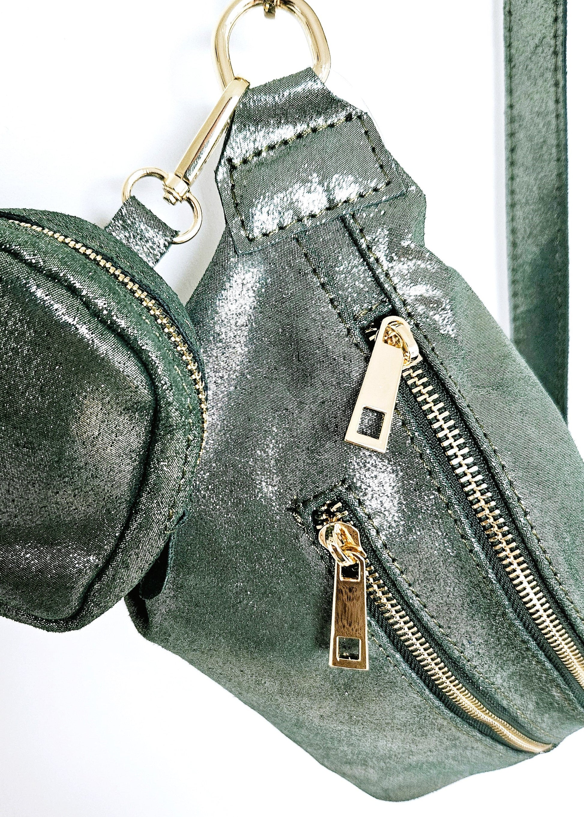 Donnez une allure audacieuse à vos tenues avec ce sac banane en cuir véritable irisé vert kaki