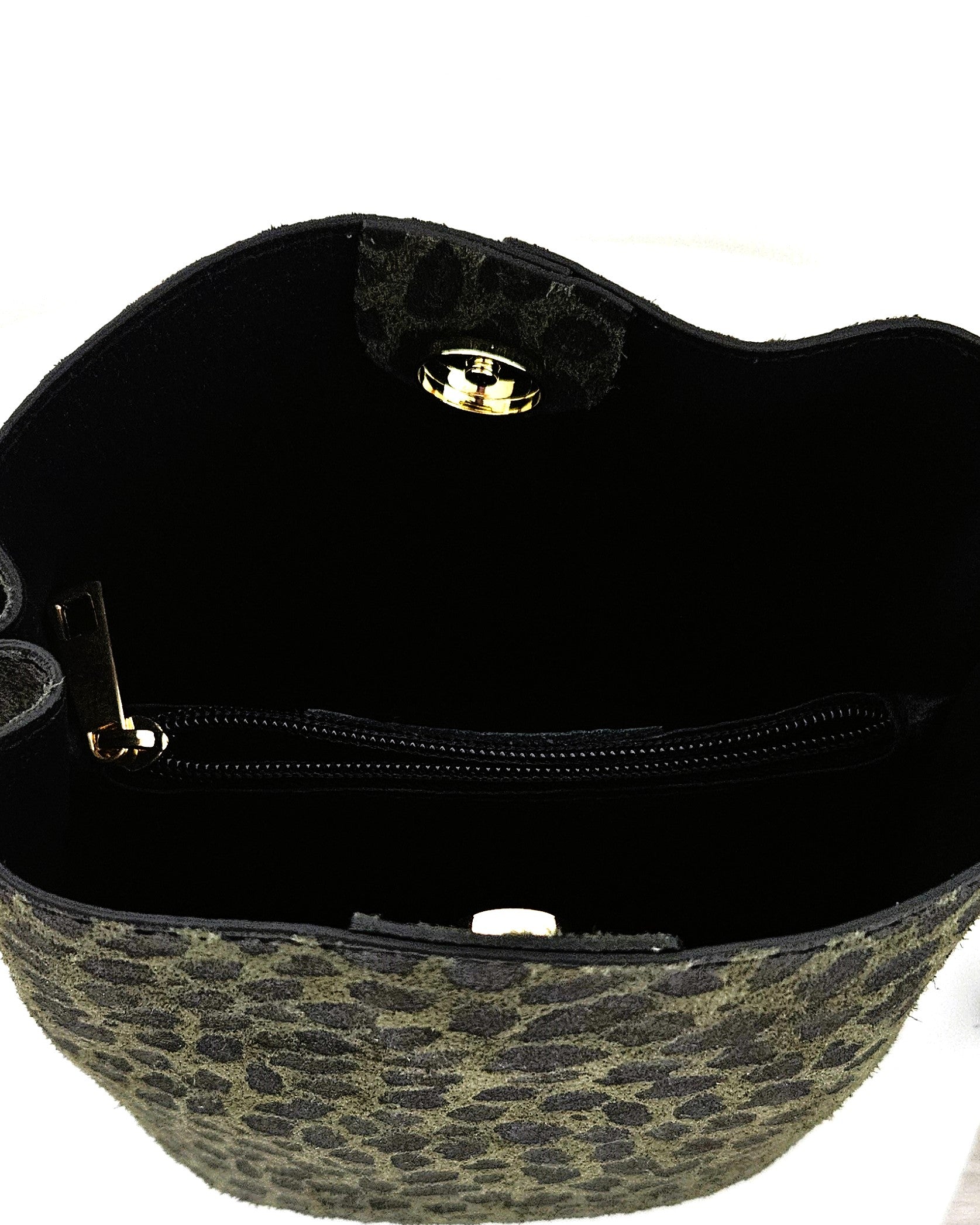 Sac seau à l'imprimé léopard version vert kaki